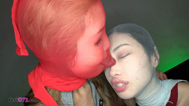 2人のパンストを用いた顔面舐めレズプレイが始まる。